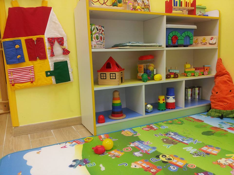 - Angolo psicomotorio, strutturato per il contenimento fisico e per la sperimentazione corporea. Può essere praticata la psicomotricità avendo a disposizione uno spazio attrezzato con materiali idonei, quali tappetini, cuscini, palloni, cerchi, percorsi motori, birilli, palle ritmiche, percorsi tattili. E’ molto importante uno sviluppo armonico tra corpo e psiche; il bambino deve essere accompagnato alla scoperta del proprio corpo, dei movimenti che è in grado di fare, della coordinazione e della sicurezza motoria.