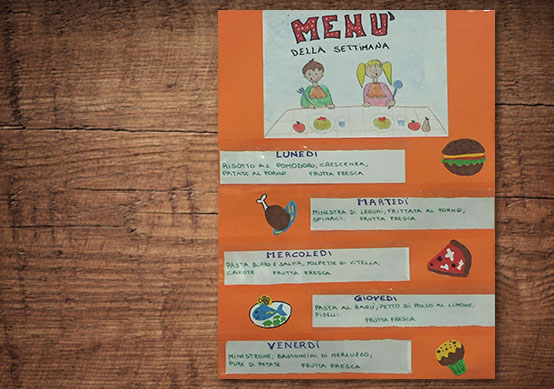 I menù seguono ritmi stagionali e sono predisposti e approvati dal pediatra della struttura. L’asilo fornisce anche gli alimenti per lo svezzamento dei più piccoli (creme, omogeneizzati anch’essi provenienti da agricoltura biologica). Se un bambino, per motivi di salute, necessita di consumare cibi specifici, la cucina  è in grado di garantire particolari diete speciali, previa certificazione del pediatra.
